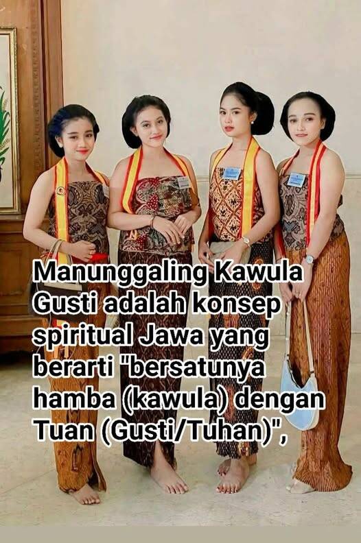 Manunggaling Kawula Gusti is een Javaans spiritueel concept dat "de vereniging van dienaar (kawula) met Heer (Gusti/God)" betekent, en beschrijft de mystieke ervaring van zelf-vereniging met het Goddelijke, waarbij het ego wordt uitgehold en de wil van het individu in harmonie is met de wil van God, vaak geassocieerd met Sheikh Siti Jenar, maar met verschillende interpretaties in de context van Javaans, mystiek en islamitische theologie (vooral tussen de controversiële wahdatul-vorm en de meer geaccepteerde wahdatus syuhud). Dit is het hoogtepunt van Javaanse spiritualiteit die totale harmonie inhoudt, waarbij wereldse verlangens worden opgegeven om innerlijke perfectie te bereiken. Betekenis en filosofie Letterlijk: "Manunggal" (verenigd) + "Kawaku" (dienaar, ik) + "Gusti" (Heer, Heer). Kernleer: Geen fysieke fusie, maar totale spirituele afstemming, waarbij de mens een weerspiegeling wordt van Gods natuur en zijn handelingen Zijn wil weerspiegelen. Doel: De volmaaktheid van het leven bereiken (Insan Kamil) door het begrip dat God in alles bestaat en dat de mens een microkosmos (kleine wereld) is dat één is met het macrokosmos (grote wereld). Gerelateerde figuren en leerstellingen Sheikh Siti Jenar: De beroemdste Javaanse mysticus onderwees dit concept, vaak controversieel omdat het werd gezien als een prioriteit voor essentie boven de sharia, hoewel hij het hoogste niveau van dienstbaarheid benadrukte. Serat Dewa Ruci: Het Javaanse spirituele verhaal dat de basis vormt voor het begrijpen van dit concept, beschrijft Bima's ontmoeting met Dewa Ruci als het bereiken van perfectie in het leven. Interpretatie & Controverse In de islam: Anders bekeken. Sommigen beschouwen hulul (God bezet schepselen) als shirk (afwijkend), terwijl anderen het begrijpen als wahdatus syuhud (het zien van de grootheid van Allah in Zijn schepping), wat meer in overeenstemming is met de islamitische geloofsbelijdenis.