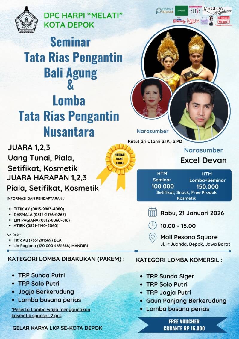 Goedemiddag, vrede zij met ons allen. Ik heb respect voor mevrouw Sami Rahayu, de voorzitter van de Wanita Bersanggul Indonesian (Wanita Pelestari Sanggul Indonesia), evenals haar mede-bestuurders en leden. Lof zij God de Almachtige voor de kans en het vertrouwen dat ons gegeven is. Namens mijn zojuist verkozen collega's wil ik mijn diepste dank uitspreken voor het mandaat om mijn taken in de Jakarta Regionale Coördinator in deze periode uit te voeren. Jakarta kent als toonbeeld van de natie uitdagingen en grote kansen op het gebied van culturele behoud. Onze toewijding in de toekomst is niet alleen om een organisatie te runnen, maar ook om ervoor te zorgen dat nationale Sanggul en kleding relevant, geliefd en trots blijven door vrouwen over generaties heen in Jakarta. We willen de geest brengen dat het Sanggul een symbool is van de elegantie en waardigheid van Indonesische vrouwen. We kunnen deze taak zeker niet alleen uitvoeren. Wij vragen gebeden van zegen, begeleiding en synergie van alle centrale beheerders en leden. Laten we van WBI/WPSI KorwilJakarta maken, hopelijk wordt Korwil Jakarta een solide, creatieve en inspirerende arena." Laten we tenslotte samen het erfgoed van onze voorouders bewaren.