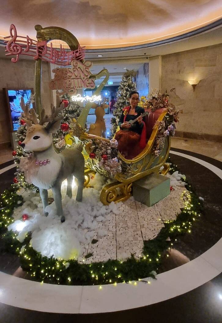 Hari ini main ukulele dan bersanggul dan kebaya.