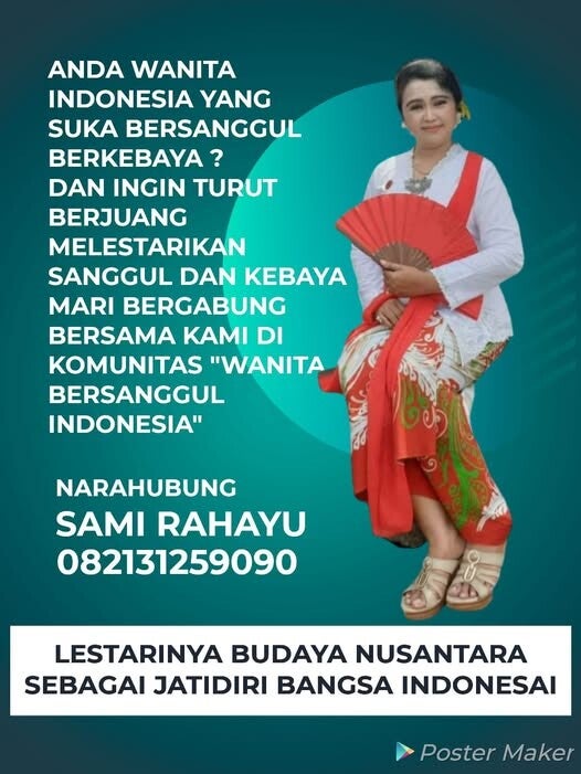 Geschreven door: Wahyu Ningsih.Yang bilang Sanggulan itu konde yang hanya pantas utk perempuan jadul , dan berkebaya itu hanya untuk memperingati hari Kartini saja , Ayo bergabung bersama kami dan kita ngobrol2 cantik bersama kami....: Wanita Pelestari Sanggul Indonesia (Wanita Bersanggul Indonesia ). Dan Postingan kami selalu Fhoto asli , bukan dari teknologi AI yang sekarang sedang marak. Ayo mari berdaya, berbudaya dan Percaya Diri dengan tampilan yang Original, bukan rekayasa