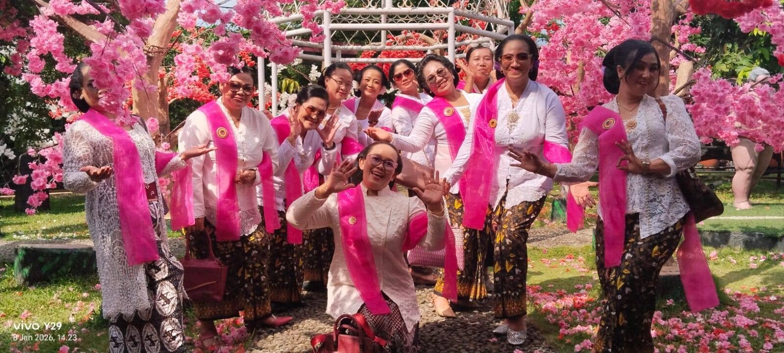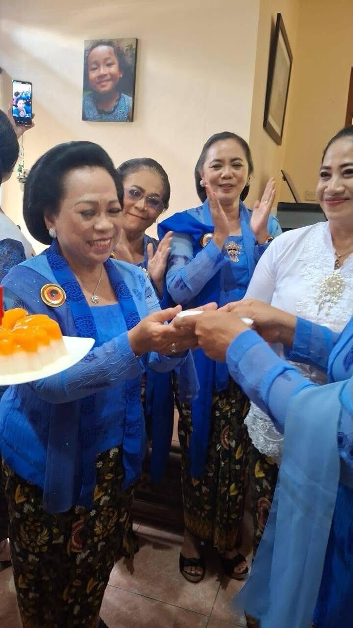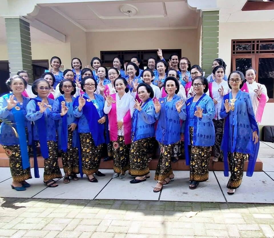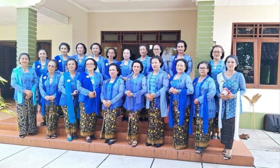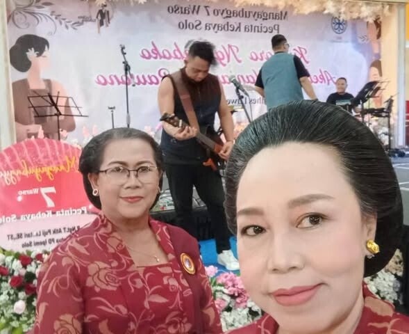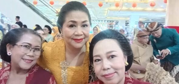 Onder de gasten met de prachtige moeders van WPSI/WBI Solo Raya-vertegenwoordigers tijdens het intieme huwelijk van zus Hening Pastel bij Gdg Suma Kedhaton Solo.
