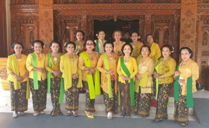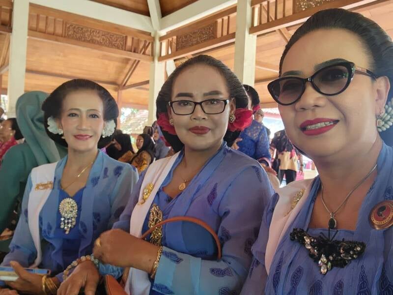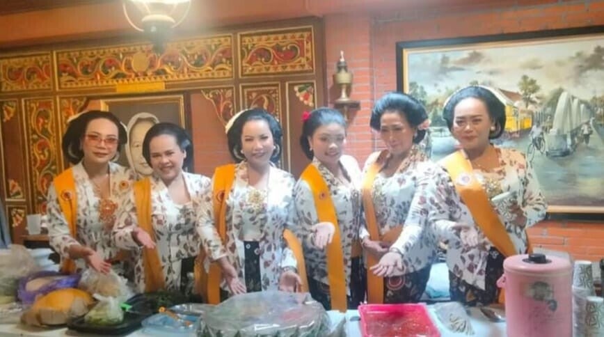 Onder de gasten met de prachtige moeders van WPSI/WBI Solo Raya-vertegenwoordigers tijdens het intieme huwelijk van zus Hening Pastel bij Gdg Suma Kedhaton Solo.